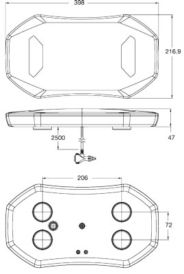 - Compact low profile 398 x 217 x 47mm body